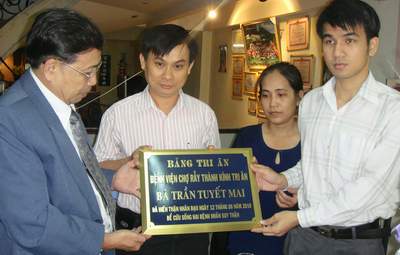 BV Chợ Rẫy trao bảng tri ân cho gia đình người hiến thận. |