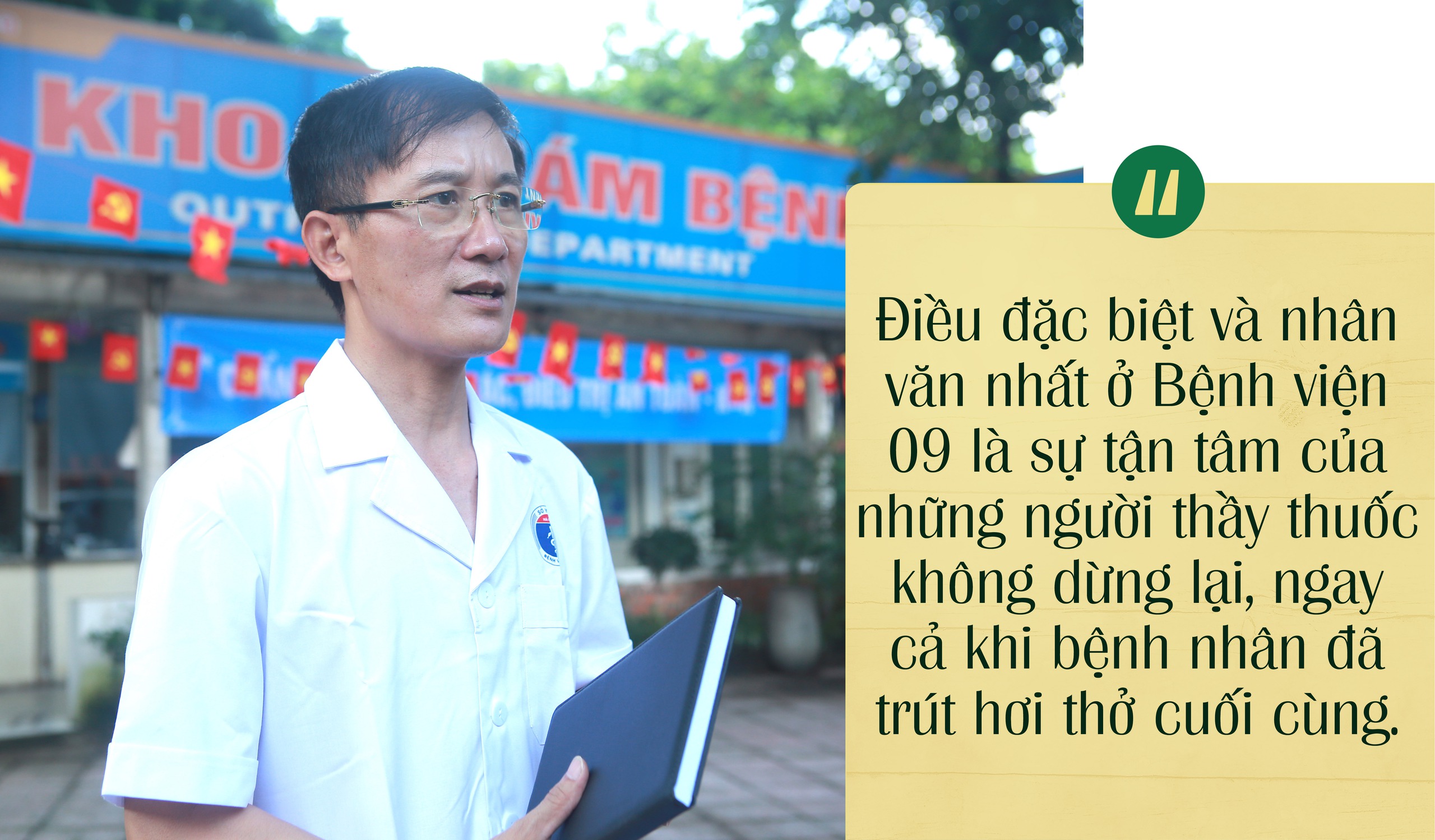 Nhưng có lẽ, điều đặc biệt và nhân văn nhất ở Bệnh viện 09 là sự tận tâm của những người thầy thuốc không dừng lại, ngay cả khi bệnh nhân đã trút hơi thở cuối cùng. Với nhiều trường hợp người bệnh không thể liên lạc được với gia đình, hành trình của các y bác sĩ lại tiếp tục với một vai trò khác. Bệnh viện sẽ đứng ra thực hiện quy trình hỏa táng và lưu trữ tro cốt cho người đã khuất.
