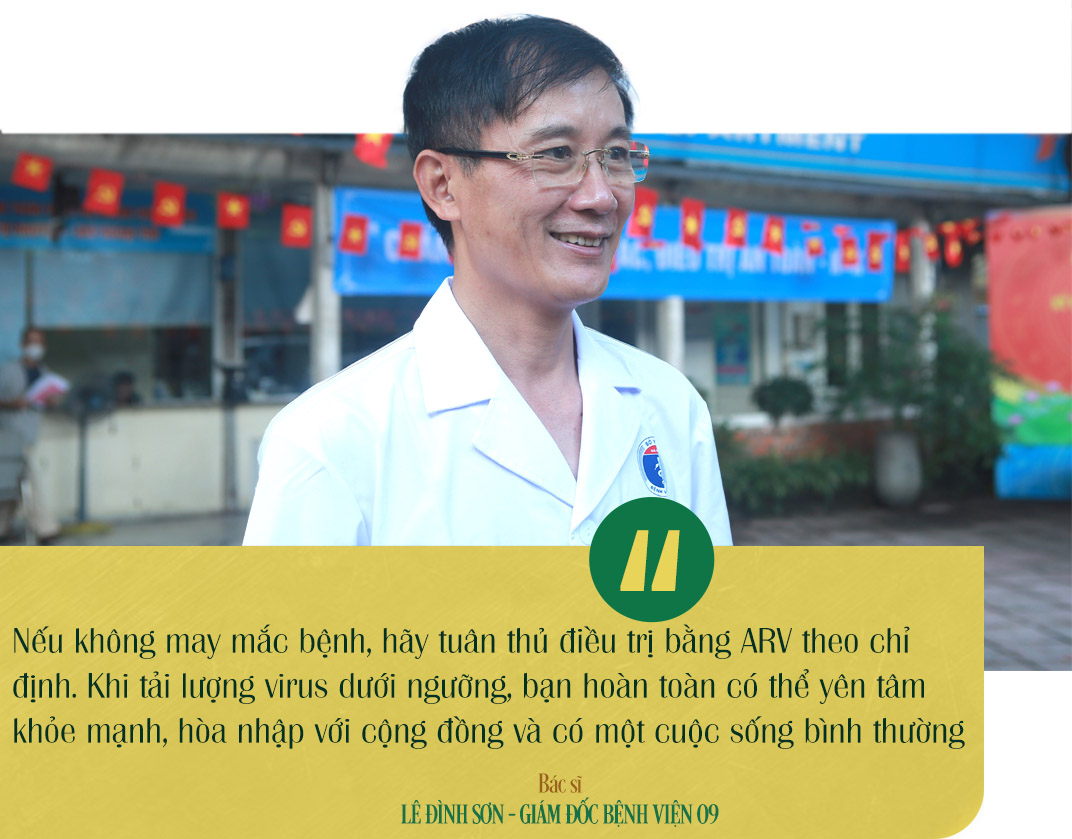 Và lời cuối cùng, cũng là lời nhắn nhủ chân thành nhất, bác sĩ Sơn muốn gửi đến những người không may nhiễm bệnh: “Bệnh nhân không nên quá lo lắng và tự ti về sự kỳ thị. Khi không may mắc bệnh, hãy tuân thủ điều trị bằng ARV theo chỉ định. Khi tải lượng virus dưới ngưỡng, bạn hoàn toàn có thể yên tâm khỏe mạnh, hòa nhập với cộng đồng và có một cuộc sống bình thường”.