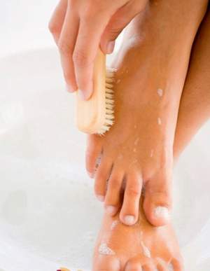 Da chết sẽ làm cho đôi chân của bạn khô ráp, kém mịn màng, phần gót chân khi sờ vào sẽ rất cứng và nứt nẻ. Bạn hãy dùng kem tẩy da chết cho tay chân, hoặc đơn giản hơn là sử dụng nước muối loãng hoặc đường nâu để tẩy da chết cho chân. Hãy sử dụng thêm thanh chải da chết, nhẹ nhàng massage để đánh bay hết lớp tế bào chết trên bề mặt da.