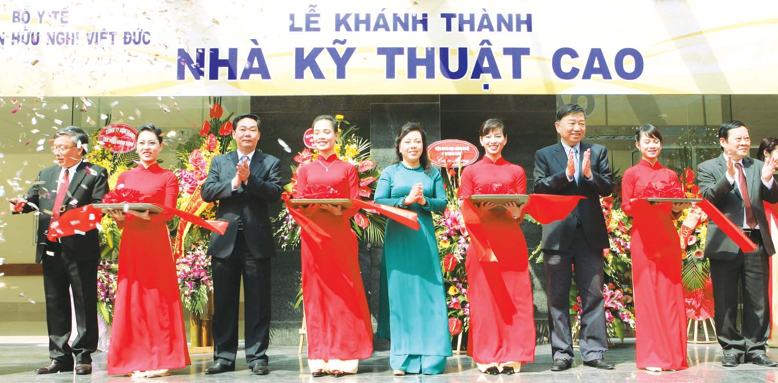 Bộ trưởng Nguyễn Thị Kim Tiến cắt băng khánh thành Tòa nhà kỹ thuật cao tại Bệnh viện Việt Đức Ảnh: Trần Minh
