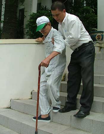 - Sử dụng gậy chống: Chiều dài của gậy phải vừa tầm. Khi bước đi thì gậy và chân đau phải chuyển động cùng một lúc. Bước lên cầu thang bằng chân không đau trước, rồi chống gậy và bước chân đau lên bậc thang, liên tiếp như vậy cho đến cuối bậc thang. Đi xuống thì làm ngược laị, nghĩa là chống gậy và đặt chân đau xuống bậc thang trước rồi mới di chuyển chân không đau.
