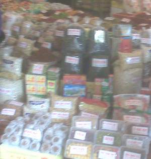 Bánh kẹo không rõ nguồn gốc được bán tràn lan tại chợ Đồng Xuân (ảnh chụp từ ĐTDĐ, sáng ngày 21/1). |
