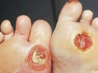 Nhiễm nấm: Hay gặp là nhiễm nấm ở bộ phận sinh dục (thường ở nữ, do nấm Candida), nấm ở kẽ giữa các ngón chân có thể gây nên loét bàn chân.