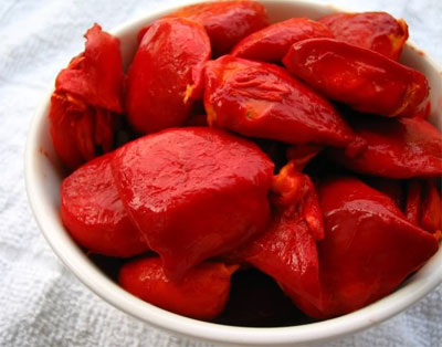 ![]() Phần màng đỏ bao quanh hạt gấc chứa caroten và một tỉ lệ cao dầu thực vật. |