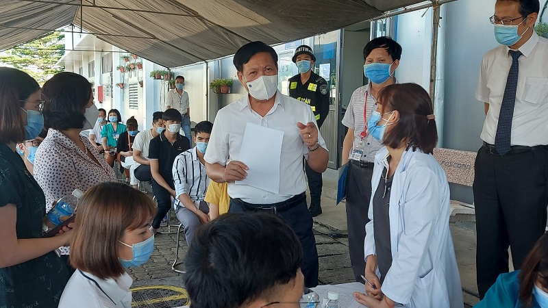 Thứ trưởng Bộ Y tế Đỗ Xuân Tuyên, trao đổi với cán bộ y tế tại điểm tiêm vắc xin của Công ty Foxconn