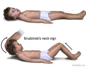 ![]() Dấu hiệu Brudzinski trong viêm màng não do não mô cầu. |