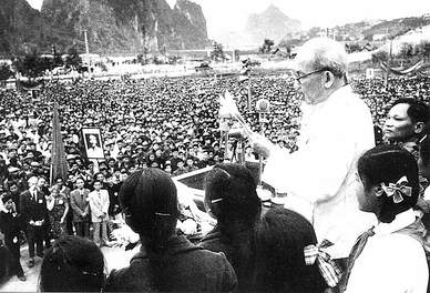 - Chủ trương, chính sách, đường lối của Đảng đúng đắn... Đến tỉnh đã hơi cong, đến huyện đã tả hữu, đến xã đã sai lệch. Vì sao? Vì cán bộ không làm đúng, không nắm chắc chủ trương, đường lối, không gần gũi dân, không chịu làm "đầy tớ nhân dân" mà chỉ muốn làm "quan cách mạng". Cho nên chữ ấy là chữ "quan liêu". Các chú không học nhưng biết và vẫn làm. Còn cái các chú học thì các chú lại ít làm.