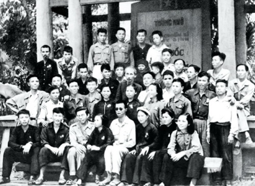 Chủ tịch Hồ Chí Minh chụp ảnh lưu niệm với đại biểu dự Đại hội Chiến sĩ thi đua và cán bộ gương mẫu toàn quốc lần thứ I, năm 1952. (Ảnh Tư liệu).