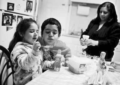 Bé Angela, 4 tuổi và anh trai Alexander, 8 tuổi đang chơi đùa bên nhau. |