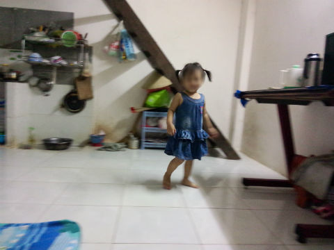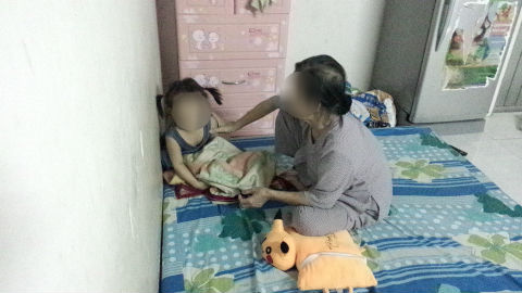 Trong căn phòng vỏn vẹn 15m2, chỉ có mẹ anh Q. và đứa con gái duy nhất của vợ chồng anh Q đang chơi đùa. Mẹ anh Q., cho biết, bà từ ngoài Bắc vào thăm con và cháu. Do hoàn cảnh neo đơn của hai bố con anh Q. mà bà phải tạm thời kiêm nhiều nhiệm vụ với vai trò người bà, người mẹ, người nội trợ trong nhà.