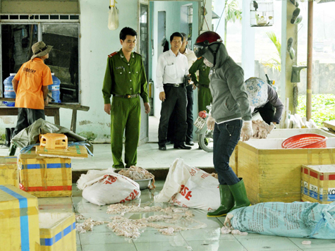 (SKDS) - Ngày 30/10, Phòng Cảnh sát môi trường Công an TP. Đà Nẵng phối hợp với Chi cục Thú y TP. Đà Nẵng bắt quả tang cơ sở mua bán sản phẩm động vật của ông Nguyễn Phi (53 tuổi, trú tổ 146, phường Hòa Khánh Nam, quận Liên Chiểu, Đà Nẵng) đang chế biến 2 tấn nội tạng lợn đã bốc mùi hôi thối nồng nặc và có rất nhiều ruồi nhặng bu bám.