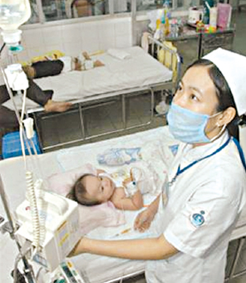 ![]() Truyền dịch cho trẻ bị sốt xuất huyết Ảnh: Minh Đức. |