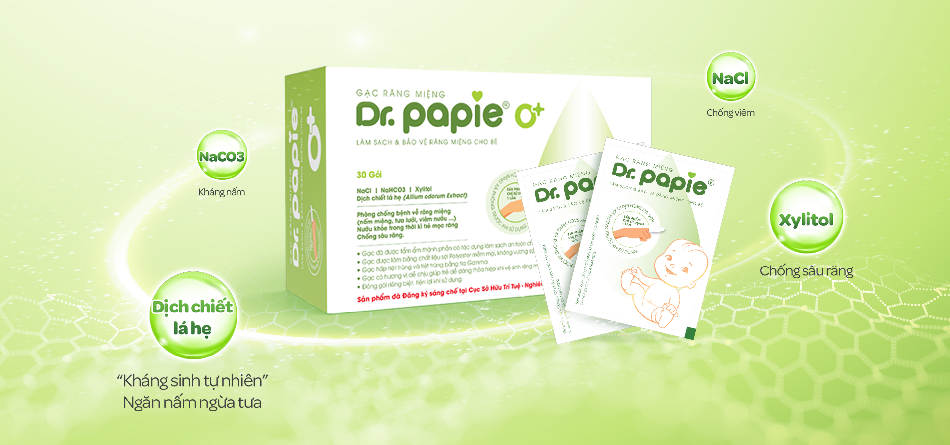 Điểm nhấn lớn nhất của Dr.Papie chính là bằng Sáng chế độc quyền cho công thức Gạc răng miệng tẩm ẩm từ chiết phẩm cây hẹ. Công thức này được xây dựng dựa trên sự kết hợp tinh gọn nhưng hiệu quả của 4 thành phần chuẩn y khoa: