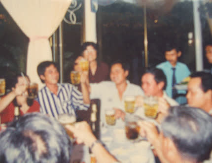 ![]() Bà P mặc áo màu xám, đeo kính đang chúc mừng mọi người. |