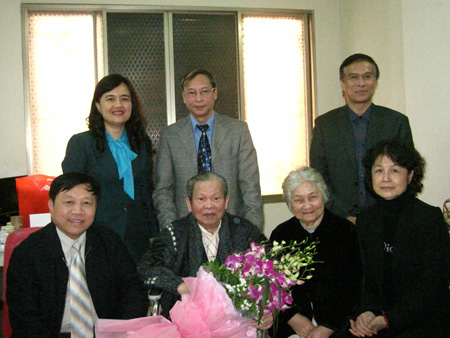 Giáo sư Mai Kỷ cùng phu nhân và cán bộ Tổng cục Dân số trong sinh nhật lần thứ 80.