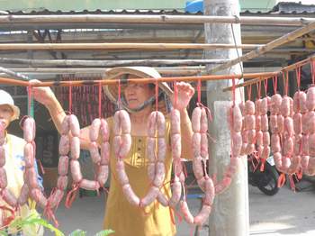 Lạp xưởng tươi - đặc sản miền Tây. Ảnh: Đ.Xá |