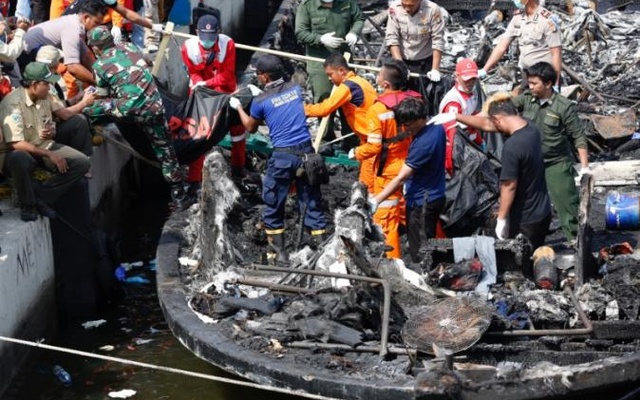 Cảnh sát Indonesia cho biết nguyên nhân ban đầu khiến tàu bị cháy là do chập điện (Ảnh: Reuters)