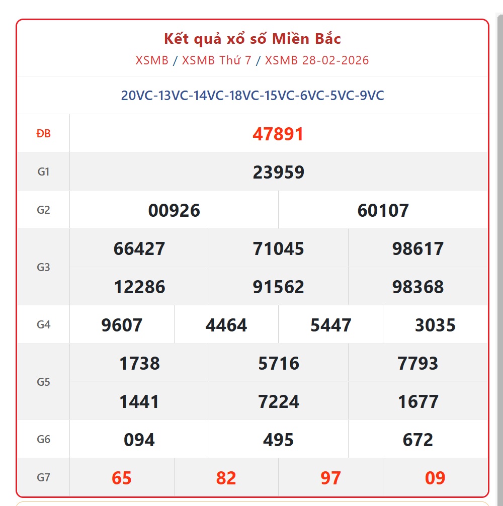 Theo dõi kết quả xổ số miền Bắc hôm nay 1/3/2026 và kết quả XSMB mỗi ngày, kết quả xổ số miền Bắc hôm nay - XSMB Chủ nhật ngày 1/3/2026, kết quả xổ số miền Bắc ngày 1/3, KQXSMB 1/3 để cập nhật kết quả sớm nhất.