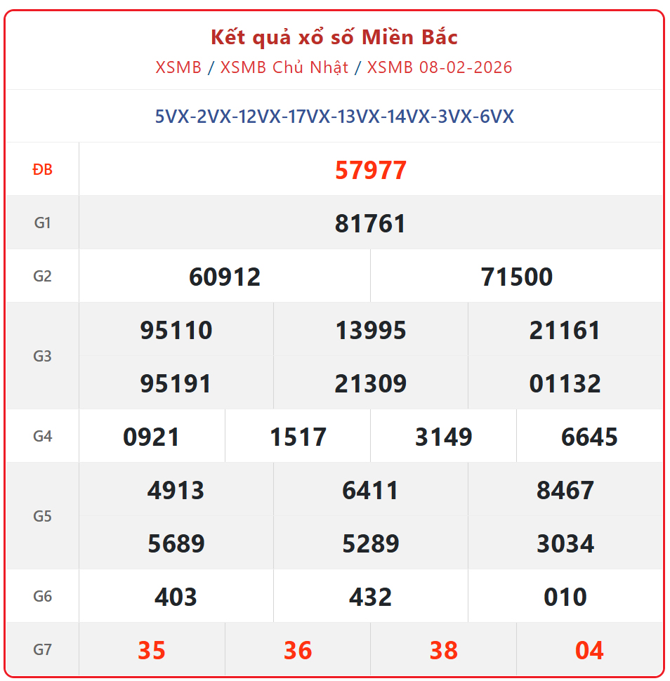 Kết quả xổ số miền Bắc ngày 5/2 /2026 - Kết quả XSMB ngày 5/2 .