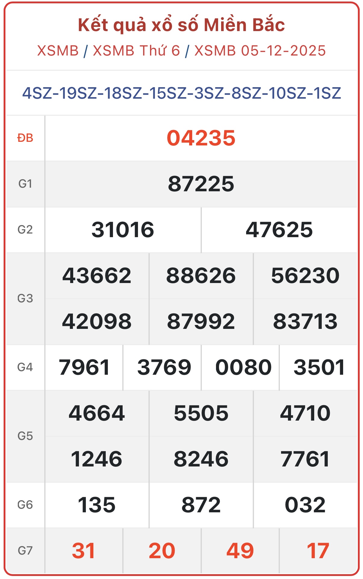 Kết quả xổ số miền Bắc ngày 5/12 /2025 - Kết quả XSMB ngày 5/12 .