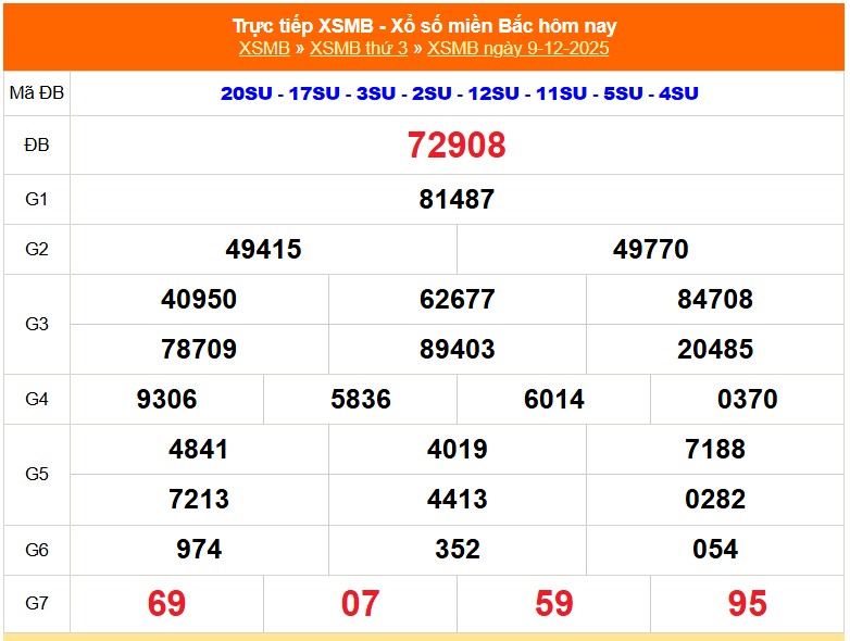 Kết quả xổ số miền Bắc ngày 9/12/2025 - Kết quả XSMB ngày 9/12.
