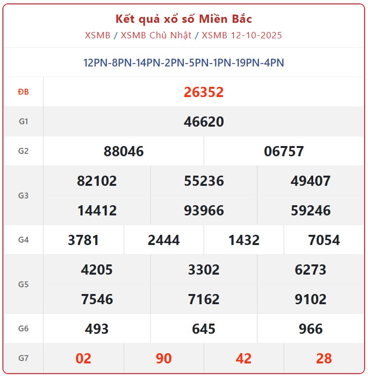 - XSMB 12/10 - Kết quả xổ số miền Bắc ngày 12/10