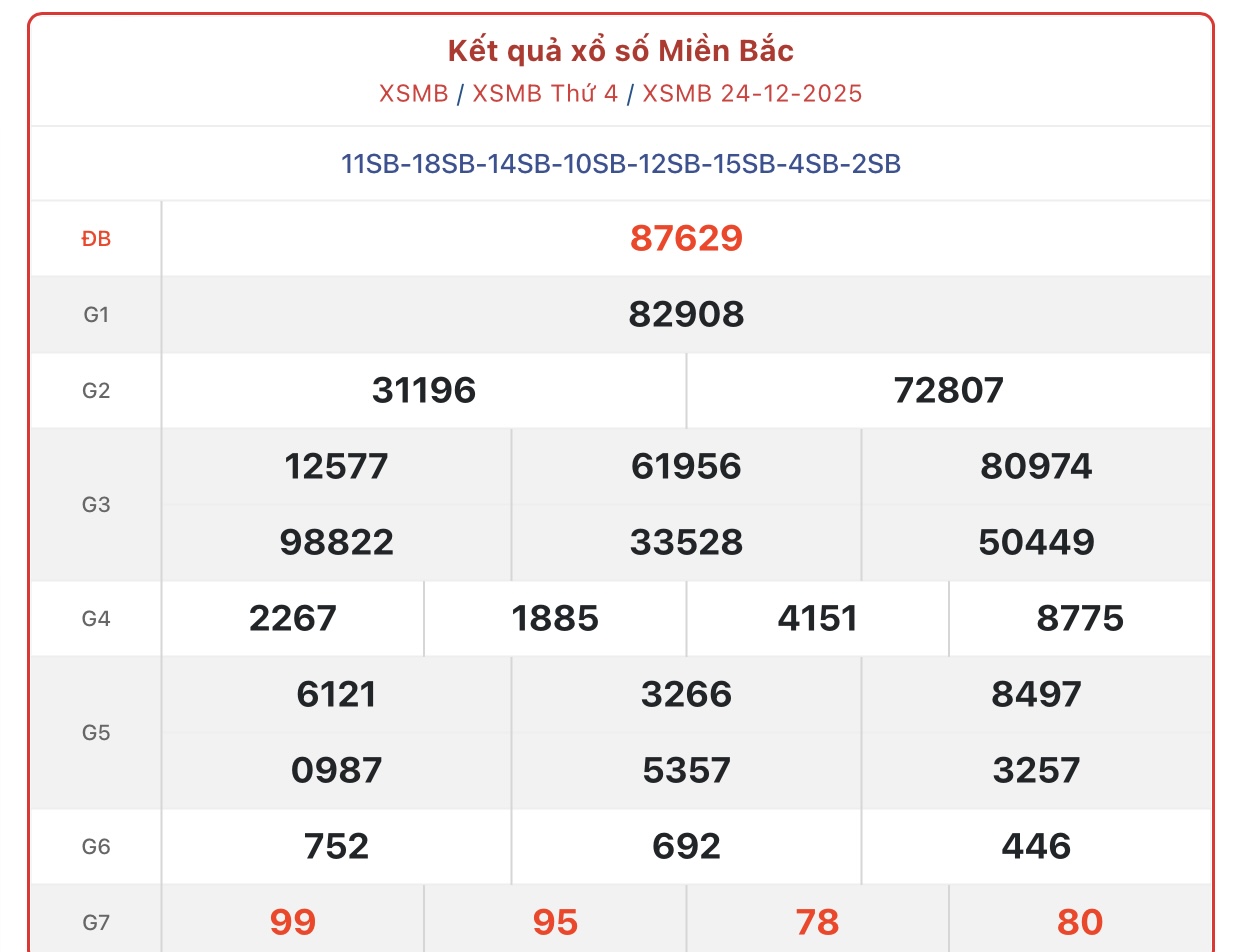 XSMB 25/12 - Kết quả xổ số miền Bắc hôm nay - Trực tiếp kết quả xổ số miền Bắc thứ 5 ngày 25/12/2025 - KQXSMB ngày 25/12 - Kết quả xổ số miền Bắc 25/12.