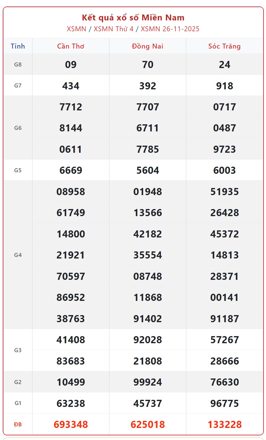 Theo dõi kết quả XSMN hôm nay 28/11/2025 và kết quả xổ số miền Nam hàng ngày, kết quả xổ số miền Nam hôm nay - XSMN thứ 6 ngày 28/11/2025, kết quả xổ số miền Nam ngày 28/11, KQXSMN 28/11 để cập nhật kết quả sớm nhất.