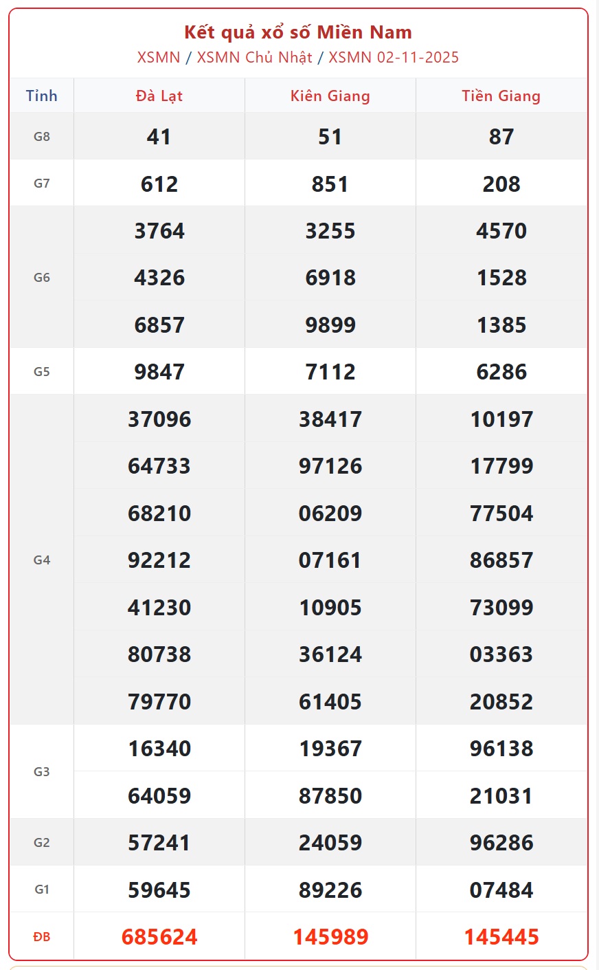 Theo dõi kết quả XSMN hôm nay 3/11/2025 và kết quả xổ số miền Nam hàng ngày, kết quả xổ số miền Nam hôm nay - XSMN thứ 2 ngày 3/11/2025, kết quả xổ số miền Nam ngày 3/11, KQXSMN 3/11 để cập nhật kết quả sớm nhất.