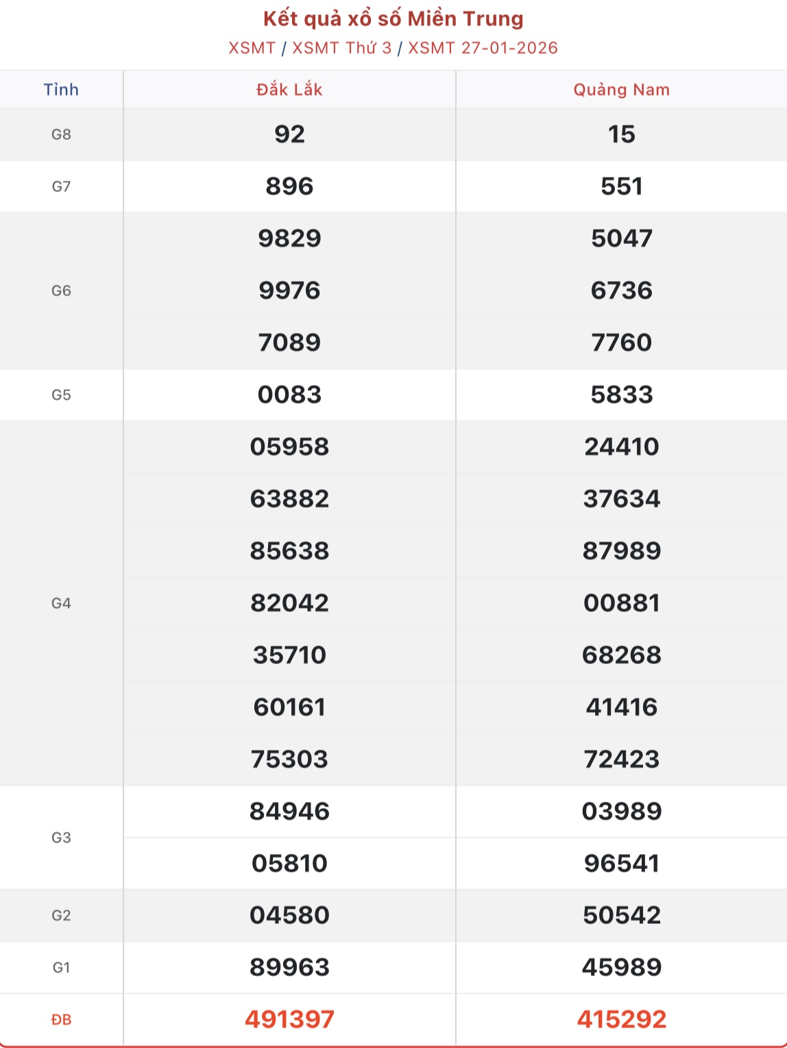 Theo dõi kết quả xổ số miền Trung hôm nay 28/1/2026 và kết quả XSMT mỗi ngày, kết quả xổ số miền Trung hôm nay - XSMT thứ 4 ngày 28/1/2026, kết quả xổ số miền Trung ngày 28/1, KQXSMT 28/1 để cập nhật kết quả sớm nhất.