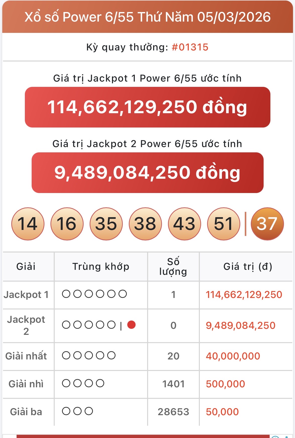 - Kết quả Vietlott Power 6/55 ngày 5/3 - Kết quả xổ số Vietlott ngày 5/3