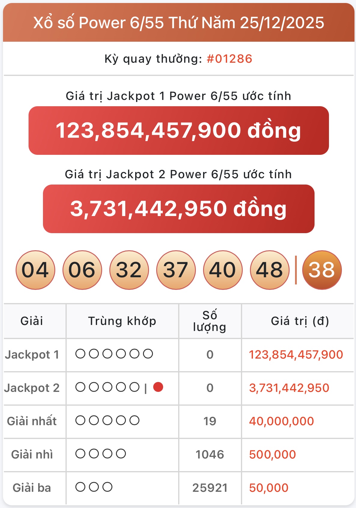 - Kết quả Vietlott Power 6/55 25/12 - Kết quả xổ số Vietlott ngày 25/12