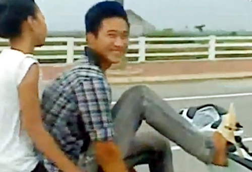 Lái xe 1 chân chở bạn gái, Nguyễn Văn Trường đã bị phạt 6,59 triệu đồng - Ảnh cắt từ clip |