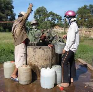 - Khử khuẩn giếng nước: dùng cloramin B, cần tính lượng cloramin B cần thiết cho giếng nước với nồng độ cần thiết là 10g/m3. Có thể dùng một số hóa chất khác như: clorua vôi 20%, nồng độ 13g/m3 nước; clorua vôi 70%, nồng độ 4g/m3 nước.