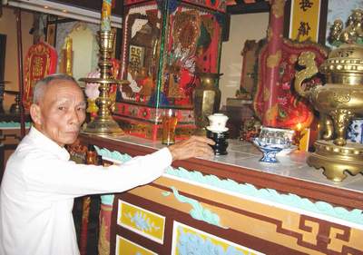 Ông Huynh trong đình làng Hải Cát, nơi diễn ra nhiều lễ hội lớn hằng năm. |