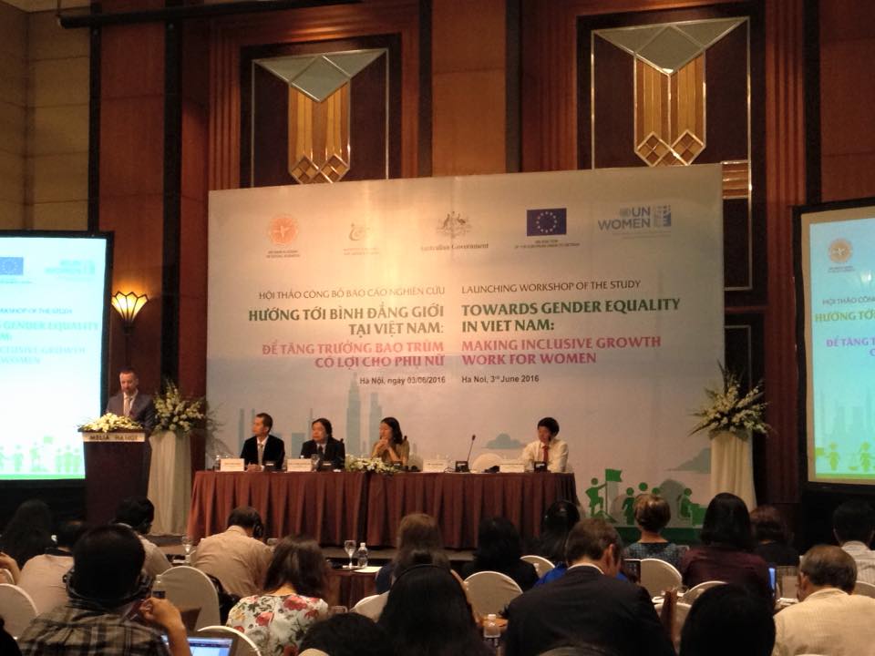 Tại hội thảo công bố báo cáo nghiên cứu Hướng tới bình đẳng giới tại Việt Nam để tăng trưởng bao trùm có lợi cho phụ nữ do Cơ quan Liên hợp quốc về Bình đẳng giới và trao quyền cho phụ nữ (UN Women) và Viện nghiên cứu gia đình và giới thuộc Viện Hàn lâm khoa học xã hội Việt Nam tiến hành trong suốt 1 năm thu thập số liệu và phân tích.