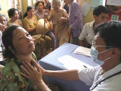 Khám bướu cổ cho bệnh nhân tại Bệnh viện Nội tiết TW. Ảnh: Khánh Linh |