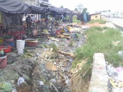 Theo ghi nhận của chúng tôi, tại hầu hết các chợ cóc, chợ tạm đều ngập rác và nước thải của các sạp bán tôm, cá và các hàng rau đổ ra, nên các lối đi bên trong chợ bốc mùi tanh hôi, gây ô nhiễm. Còn lối đi bên ngoài, cùng mương thoát chung cho cả khu vực nằm sát với chợ cũng ngập rác, bùn đất và còn bốc mùi hôi hơn cả bên trong chợ.