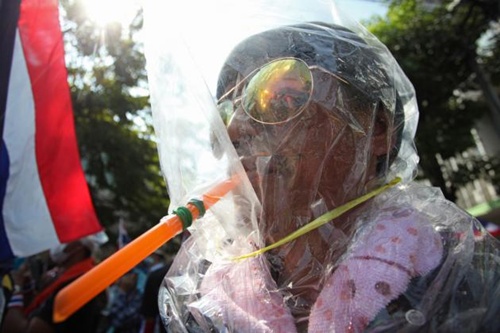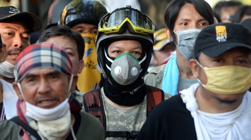 Trong khi cảnh sát Thái Lan tiếp tục sử dụng hơi cay chống lại người biểu tình, nhiều loại mặt nạ tự chế bắt đầu xuất hiện tại các điểm xung đột ở Bangkok.