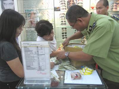Cũng trong ngày kiểm tra này, tại một số quầy bán kính trên phố Tràng Tiền, chủ cửa hàng đã chưa xuất trình được giấy tờ chứng minh được nguồn gốc, xuất xứ của một số loại kính mắt. Tại cửa hàng kính số 48, đội quản lý thị trường số 17 đã lấy 2 mẫu kính về kiểm tra chất lượng. Tình trạng này cũng đã xảy ra trước đó tại Trung tâm Kính mắt TP. HCM trên phố Hai Bà Trưng (Hà Nội), khi đoàn kiểm tra yêu cầu xem giấy tờ chứng minh nguồn gốc xuất xứ của một số loại kính, thì chủ hàng cũng đã không xuất trình được. Chứng thực của phóng viên tại một số cửa hàng bán kính cũng cho thấy, nhiều loại kính được bày bán mà không hề có tem của nhà nhập khẩu hay nhà phân phối. Ngoài ra, các thông số quang học đặc trưng của kính mắt thể hiện trên túi đựng mắt kính thuốc không được công bố rõ ràng; không ghi xuất xứ cụ thể... Thậm chí, theo một thành viên của đoàn kiểm tra, khá nhiều cửa hàng bán kính, mắt kính đựng bên trong có xuất xứ từ Trung Quốc nhưng trên bao bì thể hiện xuất xứ Korea, Germany, Italia khiến người tiêu dùng khó phân biệt được xuất xứ của kính... Không chỉ riêng ngày kiểm tra này mà trước đó, qua kiểm tra nhiều cửa hàng kính thuốc, cơ quan chức năng đã phát hiện tình trạng nhiều nhân viên đo mắt không có chứng chỉ hành nghề của Sở y tế cấp.