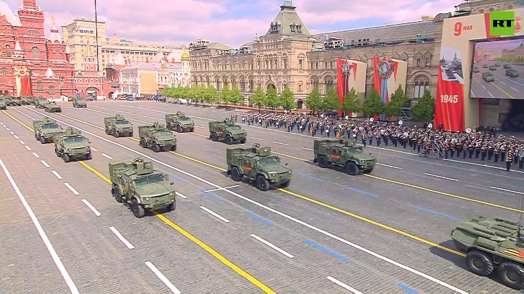 Tại phần duyệt binh năm nay, nhiều mẫu thiết bị quân sự đã xuất hiện tại Quảng trường Đỏ. Trong đó đi đầu là chiếc xe tăng T-34 huyền thoại - biểu tượng của Chiến tranh Vệ quốc Vĩ đại. Tiếp theo sau là các đoàn xe hậu cần, xe bọc thép, xe tăng thế hệ mới T-72, hệ thống tên lửa Iskander-M, hệ thống phòng không S-400, hệ thống tên lửa chiến lược Yars, cũng như xe bọc thép chở quân bánh lốp và xe chiến đấu bộ binh....
