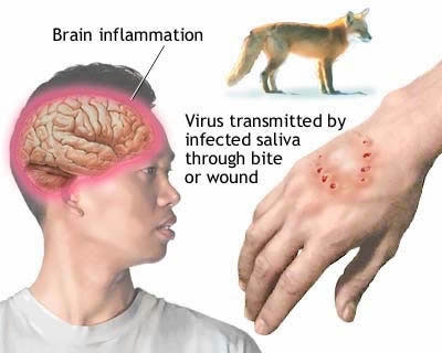 Dại là bệnh truyền nhiễm cấp tính, bệnh chủ yếu ở chó, mèo lây sang người qua vết cắn. Ngoài ra có trường hợp bệnh dại lây truyền từ người sang người qua tiếp xúc hoặc bị người bệnh cắn. Virut dại vào cơ thể qua vết cắn, rồi lan đến thần kinh trung ương với vận tốc khoảng 3mm/giờ. Khi virut đến thần kinh trung ương, nó nhân lên trong chất xám của não và di chuyển theo thần kinh đến các cơ quan khác như tuyến nước bọt, thận, phổi, tim, gan… Virut đến tuyến nước bọt và nhân lên ở đây tạo ra nguồn lây bệnh nguy hiểm. Thời gian ủ bệnh từ 7 ngày - 1 năm, trung bình 1-2 tháng. Tỉ lệ mắc bệnh và tử vong cao nhất từ vết cắn ở mặt, trung bình ở tay, thấp nhất là ở chân. Khi đã phát bệnh thì tỷ lệ tử vong là 100%.