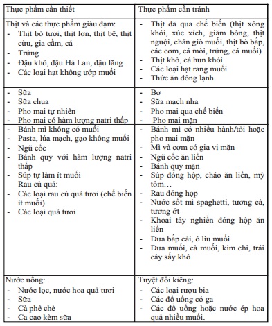 Chế độ ăn ít muối: Nếu bác sĩ tư vấn chế độ ăn ít muối thì không nên thêm muối vào các món ăn thường ngày và cũng nên tránh các thức ăn hoặc thực phẩm chế biến nhiều muối và gia vị như cà muối, dưa muối... Chế độ ăn nhiều muối sẽ làm cơ thể giữ nhiều nước, gây phù và dịch sẽ tích lũy trong bụng.