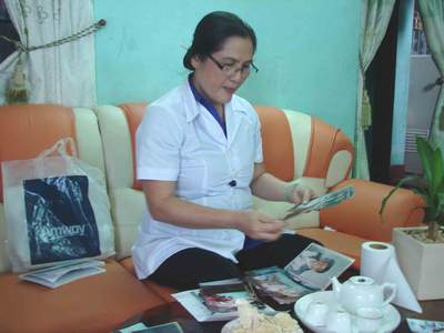 Chị Hoàng Anh đang xem lại hình ảnh những bệnh nhân mà chị đã cứu chữa. |