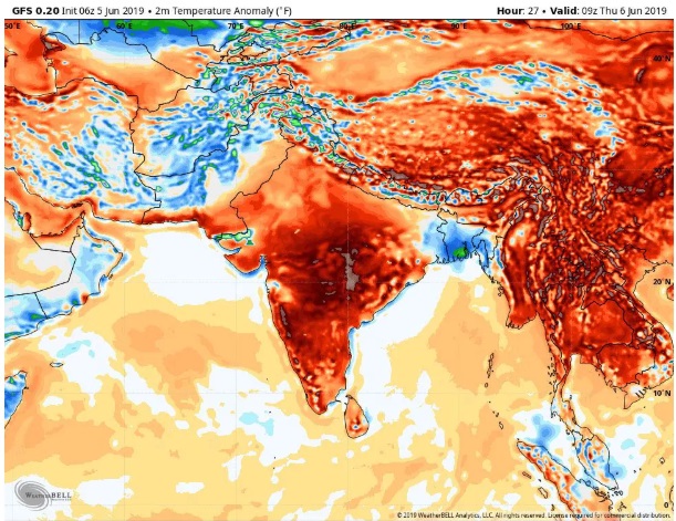 Ấn Độ đã ban hành báo động đỏ ở một số bang, nơi nền nhiệt cao hơn mức trung bình nhiều năm. Tính chung cả Ấn Độ, nhiệt độ trung bình hiện cao hơn so với năm 2016, đã có hàng chục người thiệt mạng do nắng nóng, nhiều ca tử vong do sốc nhiệt và đột quỵ. Theo các nhà khoa học, biến đổi khí hậu đang khiến mùa hè ở Ấn Độ dài hơn, nóng hơn và số người tử vong nhiều hơn.