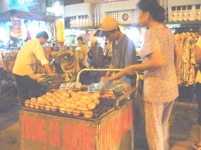 Quầy bán trứng gà nướng kiểu Thái Lan. |