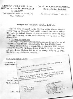 ![]() Văn bản Trường trung cấp Công đoàn HN gửi báo SK&ĐS. |