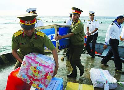 Đón những chuyến hàng nặng ân tình từ đất liền. |