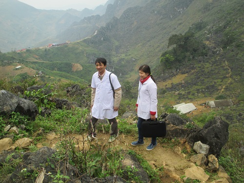 Chồng quê Nam Định, vợ quê Tuyên Quang, cặp vợ chồng BS. Hiền và Tài đều lên huyện Mèo Vạc từ lúc tốt nghiệp ra trường. Anh có thâm niên hơn chục năm làm ở đội phòng dịch của Trung tâm Y tế huyện thì chị cũng có tới 7 năm “cắm bản” tại Trạm y tế xã Sủng Máng rồi mới được chuyển ra Trung tâm Y tế huyện. Là đồng nghiệp cùng dưới xuôi lên vùng cao công tác, chung hoàn cảnh phải đối diện với sự thiếu thốn tình cảm gia đình và đương đầu với những khó khăn khắc nghiệt nơi cao nguyên đá, vậy là anh chị đã đồng cảm yêu thương, san sẻ, bù đắp thiếu thốn cho nhau mà nên vợ chồng để cùng ở lại gắn bó với vùng biên viễn và coi nơi đây là quê hương thứ hai của mình. Anh Tài kể: “Hồi những năm đầu anh lên công tác, đường trên cao nguyên đá còn treo leo hiểm trở, từ quê anh lên được đến Mèo Vạc cũng mất tới 3 ngày đi đường, còn từ huyện vào xã công tác đều phải cuốc bộ. Xe khách từ tỉnh lên huyện một tuần mới có một chuyến, đường toàn đá hộc, vực sâu hun hút, những hôm trời mưa xe phải cuốn xích vào lốp mới bò được qua những cua dốc hiểm trở. Muốn mua được vé cũng phải xếp hàng vài ngày trước khi về. Còn để từ xã ra đến huyện cũng mất cả ngày đi bộ đường núi heo hút”. Vậy mà suốt gần hai chục năm làm ở Đội phòng dịch, 199 thôn bản, 18 xã trong toàn huyện anh thuộc như từng sợi chỉ trong lòng bàn tay. Nhiều năm anh đã tình nguyện ở lại trực Tết để nhường cho những đồng nghiệp có gia đình về đoàn tụ với gia đình. Chị Hiền thì bảo: “Vụ dịch não mô cầu, bệnh than xảy ra ở Đồng Văn, Mèo Vạc năm 2002, khi đó anh chị mới cưới nhau, hứa với gia đình là dâu mới sẽ về ăn Tết với bố mẹ. Vậy mà hành lý chưa kịp xếp vào túi thì cơ quan đã có lệnh ở lại trực Tết chống dịch 100%. Đã thế còn phải chia nhau chồng, vợ mỗi người vào một bản ăn Tết với đồng bào ngay tại vùng dịch”.
